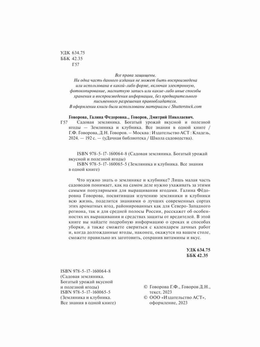 Что нужно знать о землянике и клубнике? Лишь малая часть садоводов понимает, как на самом деле нужно ухаживать за этими самыми популярными для выращивания ягодами. Галина Фёдоровна Говорова, посвятившая изучению земляники и клубники всю жизнь, поделится знаниями о лучших современных сортах этих ароматных ягод, районированных как для Северо-Западного региона, так и для средней полосы России, расскажет об особенностях их выращивания и средствах защиты от вредителей. В этой книге вы найдете подробную информацию о сроках и способах уборки, а также сможете свериться с календарем дачных работ и, когда долгожданные ягоды, наконец, окажутся на вашем столе, сможете правильно их заготовить, сохранив витамины и вкус.