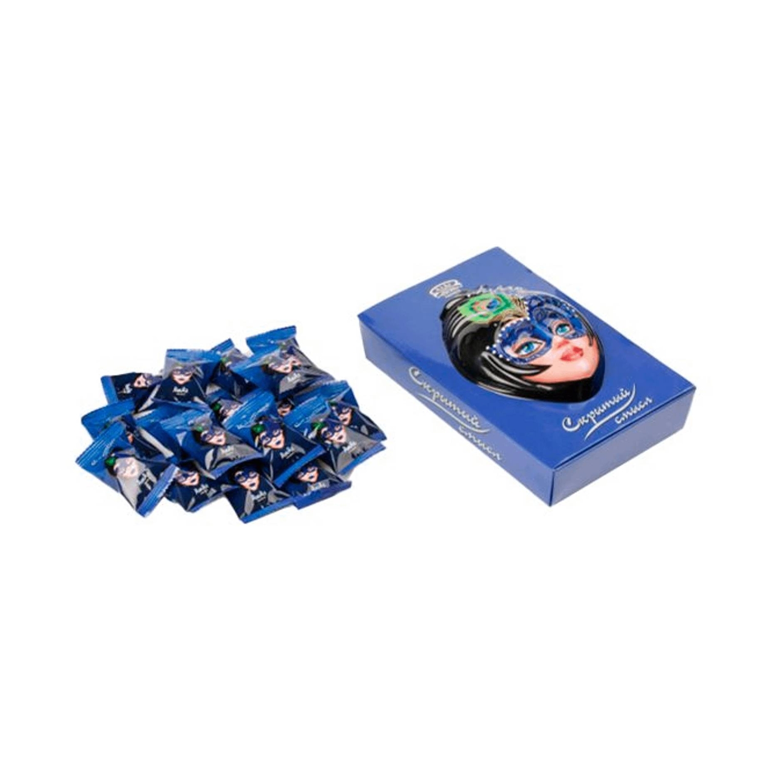 Фигурные конфеты в настоящем темном шоколаде с темной начинкой с добавлением леденцовой карамели.