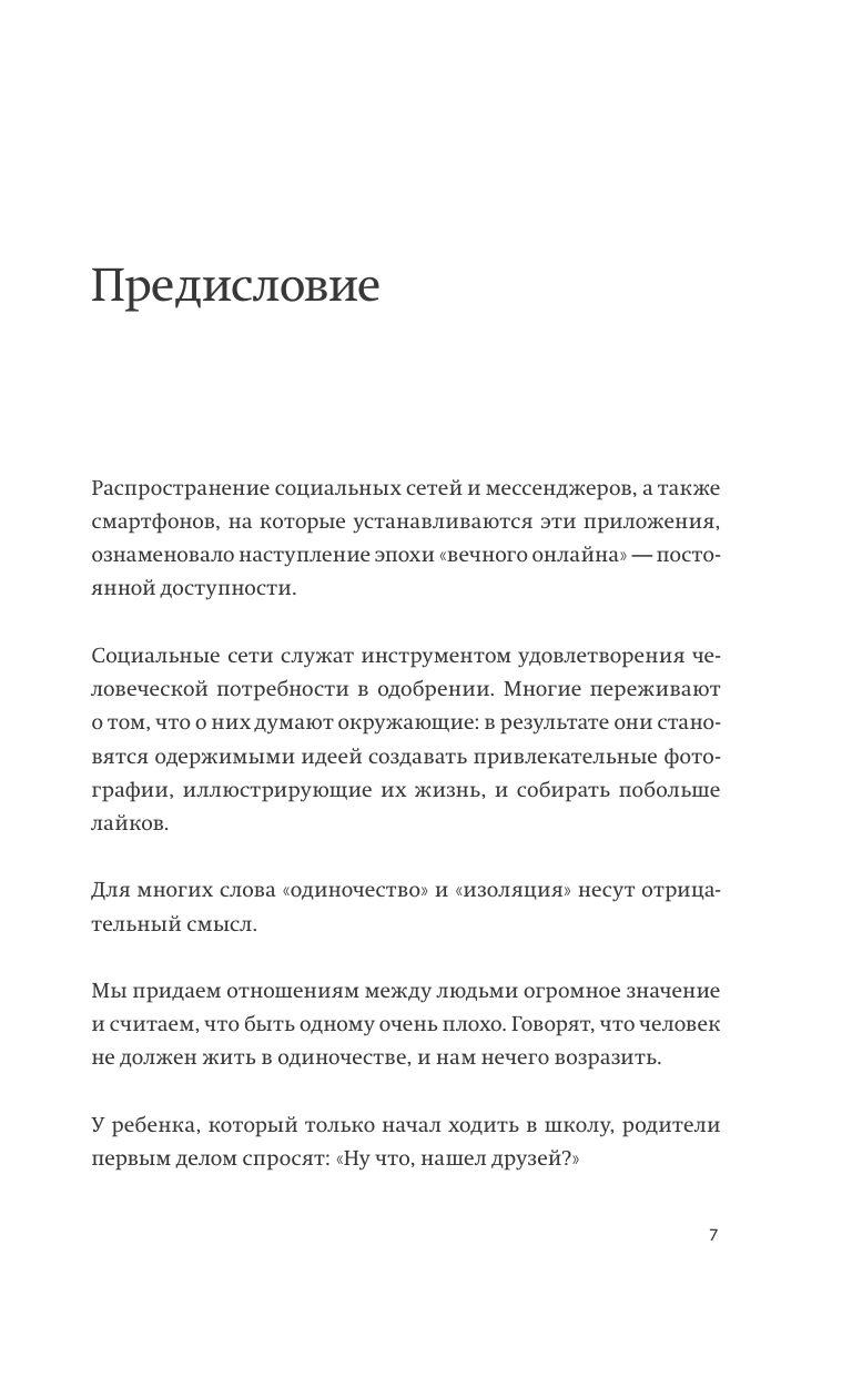 В четвертой книге серии "Живи настоящую жизнь" автор — известный японский бизнесмен, писатель и спикер — расскажет о том, как поверить в себя и свои силы и действовать, руководствуясь собственными желаниями и потребностями. Мы живем в эпоху онлайна и привыкли, что люди всегда рядом. Мы пропадаем в соцсетях, ищем виртуальной поддержки и грустим, если не получаем ее. Токио Годо предлагает вам обратить внимание на себя и выработать новый подход: "Моя жизнь важнее всего". В четвертой книге серии "Живи настоящую жизнь" вы научитесь вести диалог с собой, анализировать опыт, сможете осознать свои ценности и жить в соответствии с ними. Вы научитесь находить опору в себе. Начнете брать на себя ответственность за собственную жизнь, концентрироваться на своих стремлениях — даже общаясь с другими людьми. Вам не придется поддерживать ненужные отношения. Вы сможете наслаждаться как обществом других людей, так и одиночеством. Не ломайте себя, подстраиваясь под окружающих. Живите своей жизнью и наслаждайтесь ею, даже если прямо сейчас никого нет рядом. Для кого книга Для тех, кто стремится проанализировать свой опыт, осознать свои ценности и жить в соответствии с ними. Для всех, кто хочет двигаться вперед и быть счастливым.