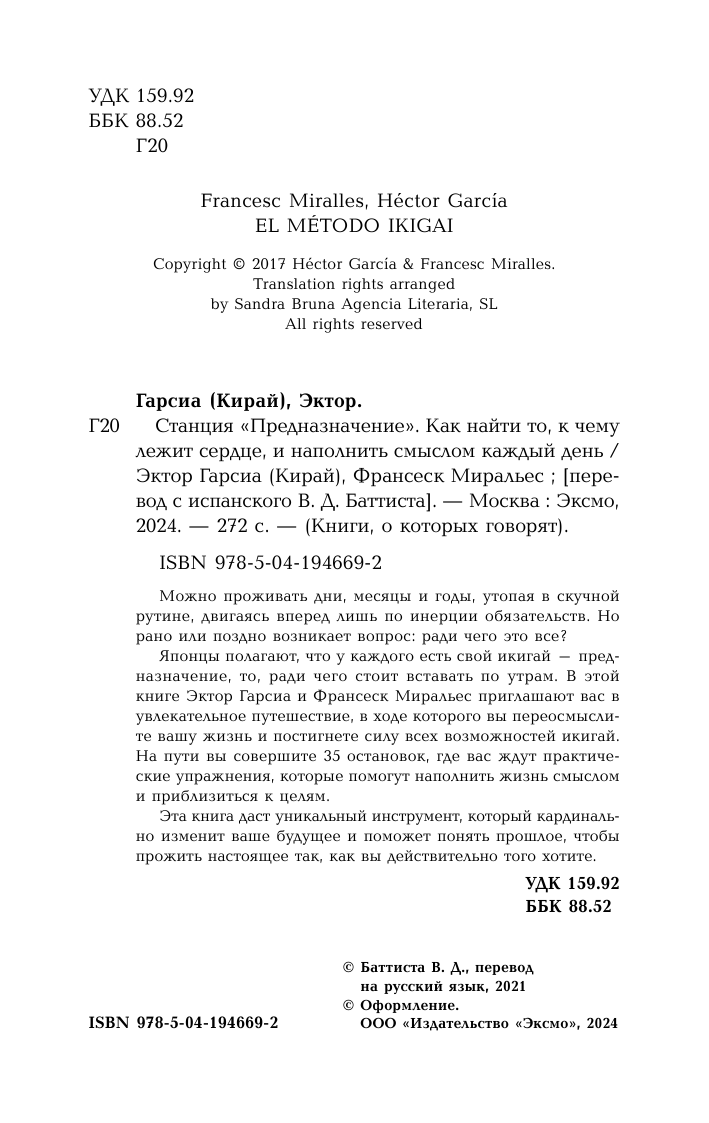 Японцы полагают, что у каждого есть свой икигай – предназначение, то, ради чего стоит вставать по утрам. В этой книге Эктор Гарсиа и Франсеск Миральес приглашают вас в увлекательное путешествие, в ходе которого вы переосмыслите вашу жизнь и постигните силу всех возможностей икигай. На пути вы совершите 35 остановок, где вас ждут практические упражнения, которые помогут наполнить жизнь смыслом и приблизиться к целям.