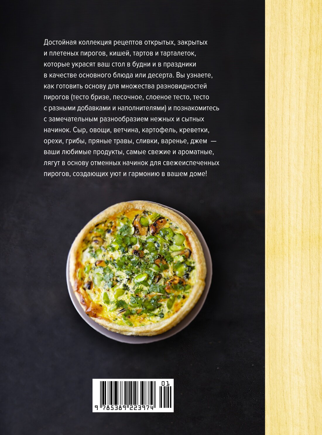 Достойная коллекция рецептов открытых, закрытых и плетеных пирогов, кишей, тартов и тарталеток, которые украсят ваш стол в будни и в праздники в качестве основного блюда или десерта. Вы узнаете, как готовить основу для множества разновидностей пирогов (тесто бризе, песочное, слоеное тесто, тесто с разными добавками и наполнителями) и познакомитесь с замечательным разнообразием нежных и сытных начинок. Сыр, овощи, ветчина, картофель, креветки, орехи, грибы, пряные травы, сливки, варенье, джем — ваши любимые продукты, самые свежие и ароматные, лягут в основу отменных начинок для свежеиспеченных пирогов, создающих уют и гармонию в вашем доме!