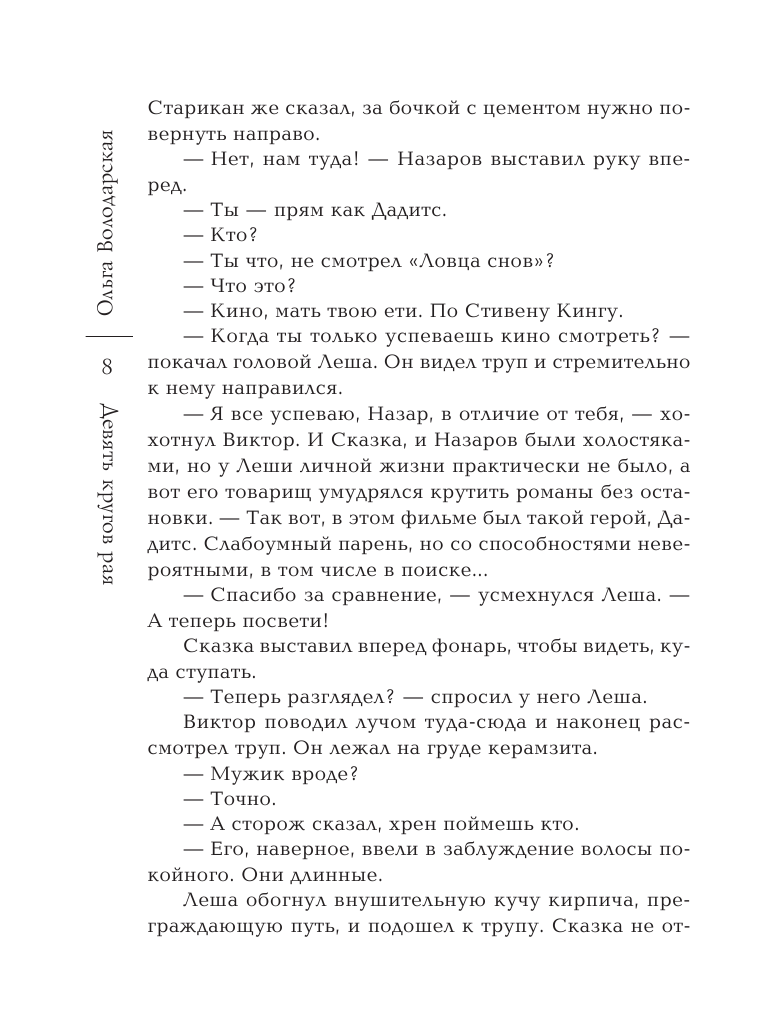 Романы Ольги Володарской — остросоциальные детективы, в которых автор препарирует все стороны жизни современного общества, ничего не скрывая и ни о чем не умалчивая. Ее книги написаны так увлекательно, что оторваться просто невозможно. Яркий сочный язык и блестящий авторский стиль создают неповторимую атмосферу, в которую с головой погружается читатель.