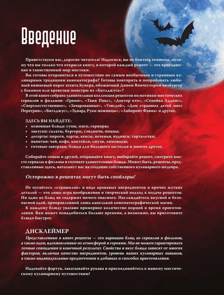 Вы готовы отправиться в путешествие по самым странным и необычным кулинарным традициям кино? В этой книге собрана удивительная коллекция рецептов по мотивам самых популярных мистических фильмов и сериалов: "Твин Пикс", "Доктор кто", "Семейка Аддамс", "Сверхъестественное", "Зачарованные" и другие. С помощью книги вы легко приготовите: • торт на День рождения Уэнсдей • любимый вишневый пирог агента Купера • завтрак Сэма и Дина Винчестеров • шашлык от Эдварда Руки-ножницы и многое другое Добро пожаловать в таинственный мир кулинарии!