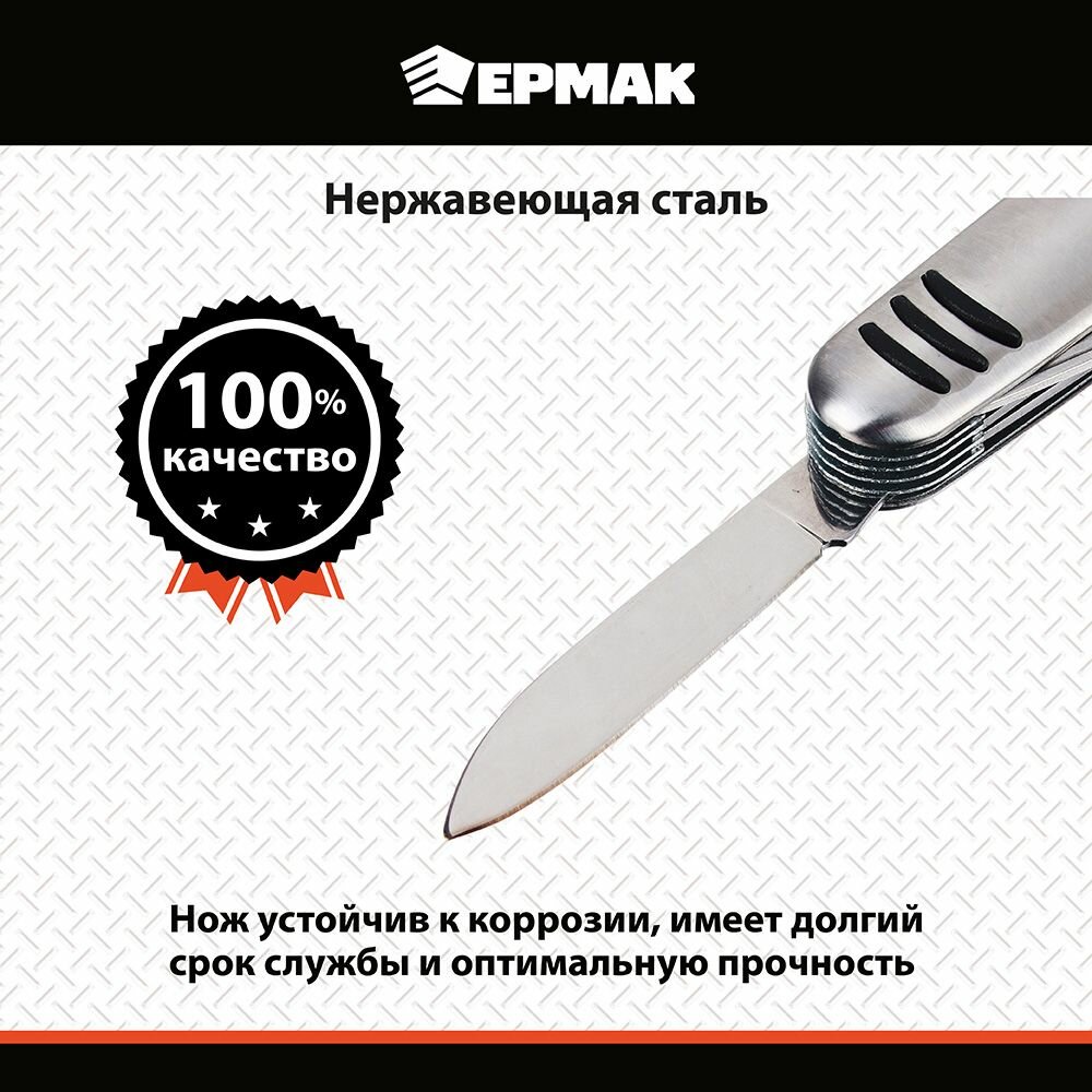 Компактный и многофункциональный перочинный нож из нержавеющей стали. Пригодится на охоте, рыбалке, в походе или на даче. Нож не боится влаги, очень прочный. Сочетает 11 функций, с помощью него можно резать, пилить, открывать. Удобный и не очень большой размер 15 см, с этим ножом Вы почувствуете удобство, избавитесь от многих хлопот и будете брать его с собой во все поездки.