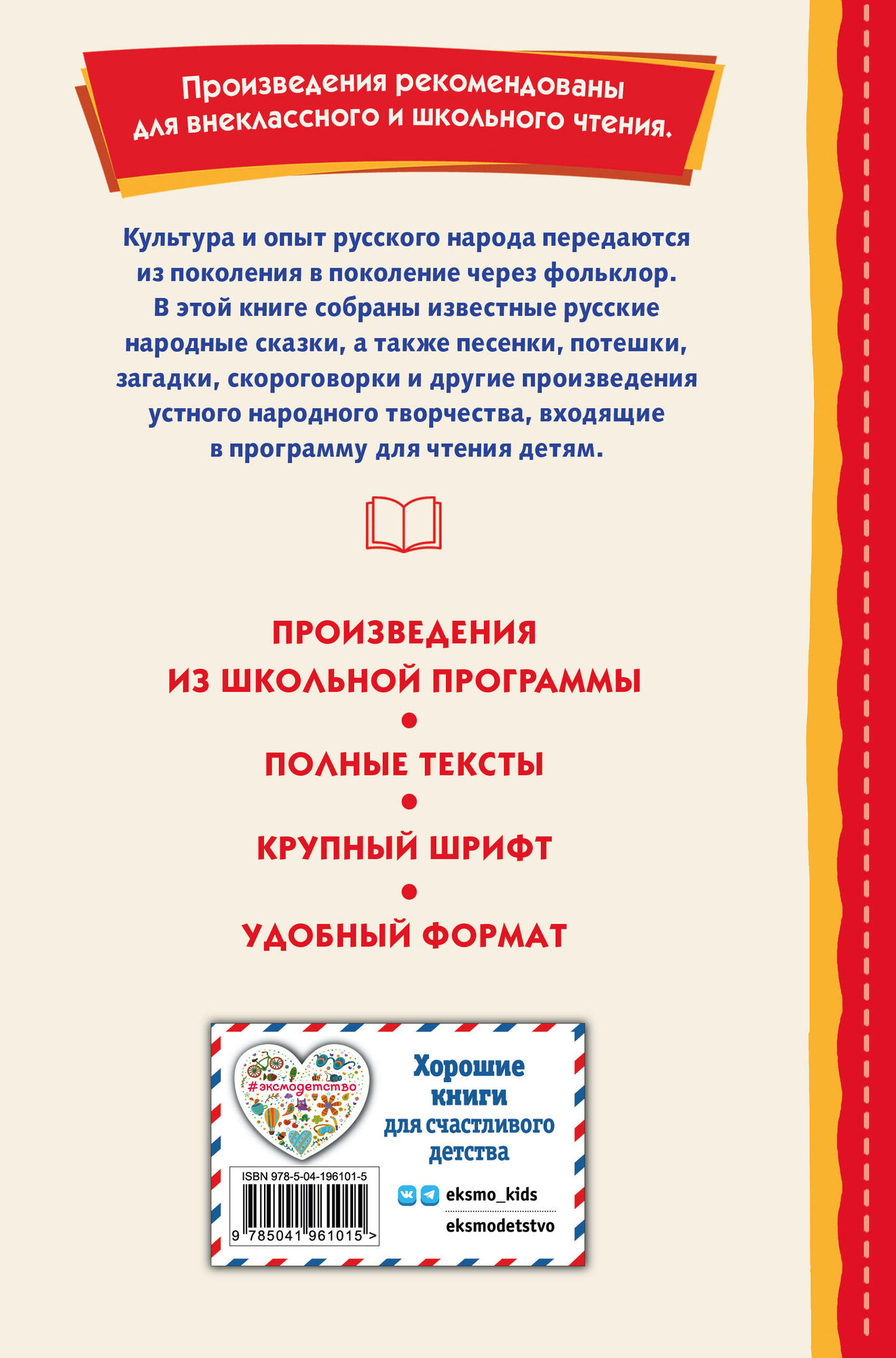 Песенки и потешки, загадки и скороговорки, волшебные и бытовые сказки - из поколения в поколение с помощью устного народного творчества передаются культура и опыт русского народа. В этой книге собраны самые известные произведения устного фольклора, входящие в программу для чтения детям 1-го и 2-го классов: «Теремок», «Зимовье зверей», «Золотая рыбка», «Иван-царевич и Серый волк» и др. Красочные иллюстрации Юлии Устиновой и Марины Литвиновой дополняют и оживляют мир русского фольклора на страницах этого сборника. «Книги для внеклассного чтения» - это подборка главных произведений русских и зарубежных авторов, входящих в школьную программу. Лучшие произведения детской литературы с цветными иллюстрациями помогут привить ребенку любовь к чтению.