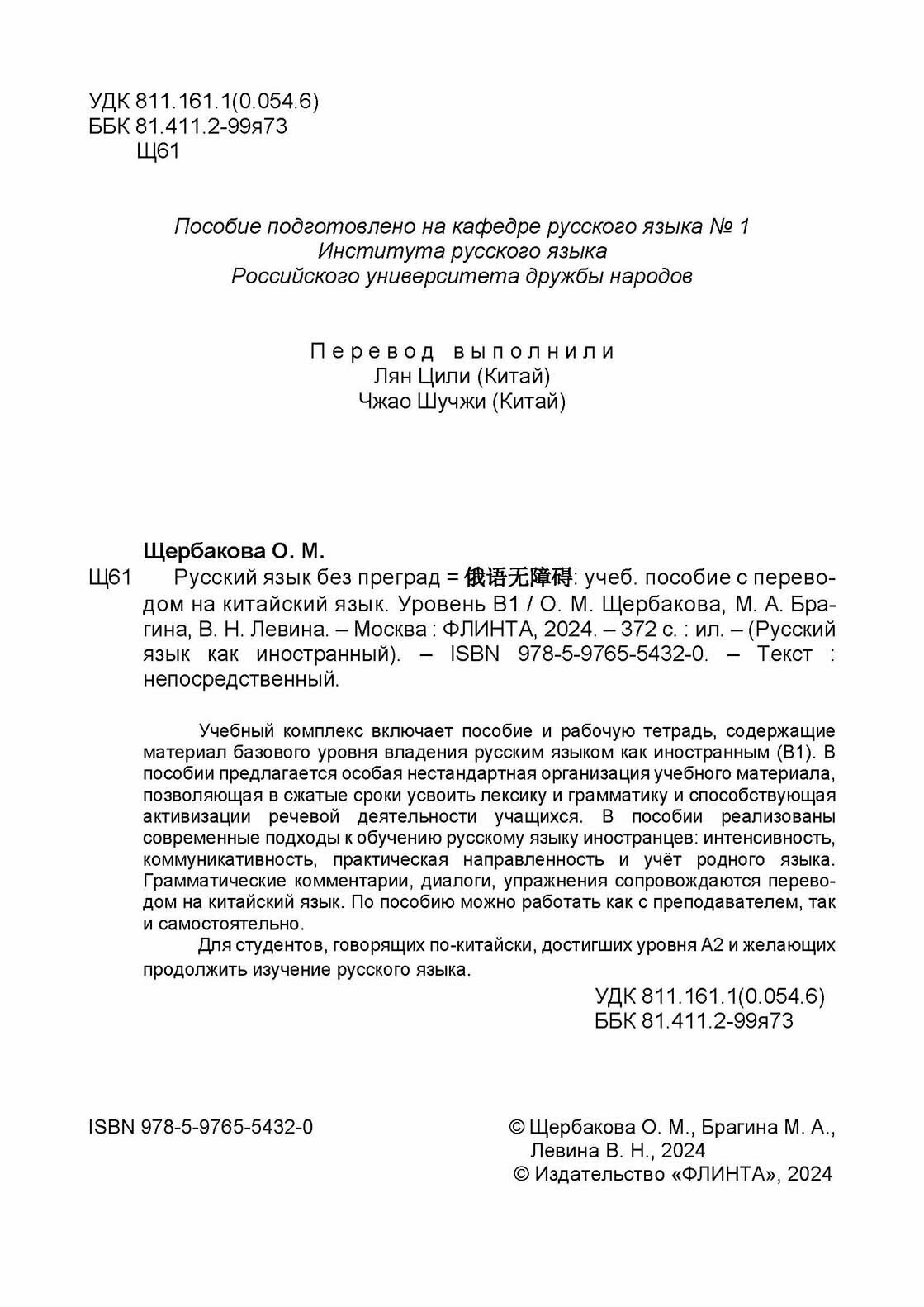 Русский язык без преград. Учебное пособие с переводом на китайский язык. Уровень B1; Флинта, 2024