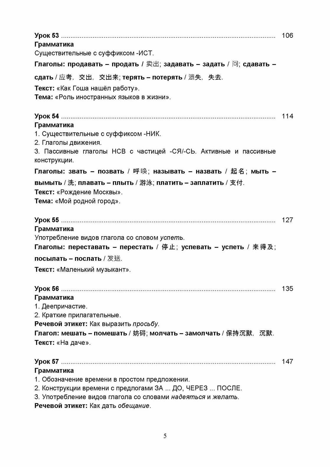 Учебный комплекс включает пособие и рабочую тетрадь, содержащие материал базового уровня владения русским языком как иностранным (В1). В пособии предлагается особая нестандартная организация учебного материала, позволяющая в сжатые сроки усвоить лексику и грамматику и способствующая активизации речевой деятельности учащихся. В пособии реализованы современные подходы к обучению русскому языку иностранцев: интенсивность, коммуникативность, практическая направленность и учет родного языка. Грамматические комментарии, диалоги, упражнения сопровождаются переводом на китайский язык. По пособию можно работать как с преподавателем, так и самостоятельно. Для студентов, говорящих по-китайски, достигших уровня А2 и желающих продолжить изучение русского языка.