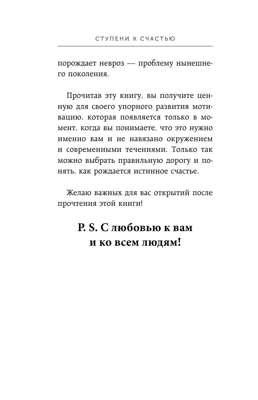 Эта книга родилась в голове человека, который начинал свою борьбу и предпринимательскую деятельность с самого низа, с улиц Казани на заре 2000-х. Его путь становления был тернист, но все же он не потерял любовь к людям, всегда обитавшую в его сердце, а жизненные испытания не взрастили в нем злость и обиду, а помогли научиться анализировать себя и свои действия. Прочитав эту книгу, вы получите ценную для своего упорного развития мотивацию, которая появляется только в момент, когда вы понимаете, что это нужно именно вам и не навязано окружением и современными течениями. Информация, описанная в этой книге, должна помочь вам научиться задавать себе правильные вопросы, не отвлекаясь на внешнюю среду, выработать иной взгляд на привычные в прошлом вещи и, вероятно, дать возможность увидеть, к какому негативному сценарию приводят все наши страхи и отсутствие любви к людям.