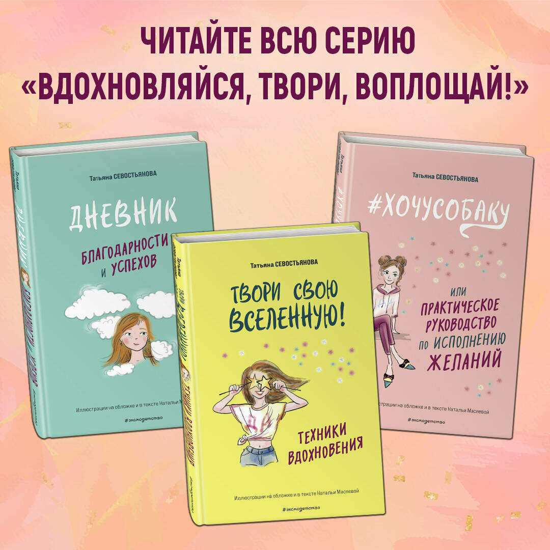Новинка в серии книг и практических пособий, призванных помочь научиться воплощать свои цели и мечты, позитивно мыслить и верить в себя и свой успех. В серию входят «# ХОЧУ СОБАКУ, или Практическое руководство по исполнению желаний», «Дневник благодарности и успехов», «Карта Желаний. Мечта сбудется!».