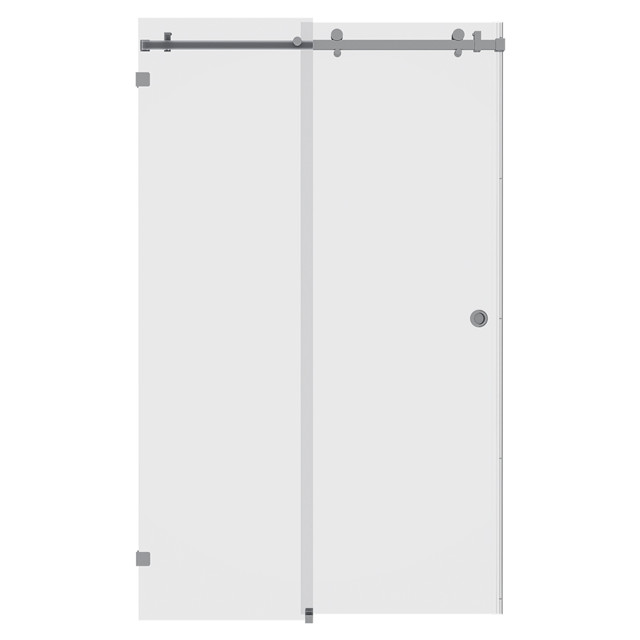 Раздвижная беспрофильная душевая дверь. Выполнена из безопасного закаленного стекла - 8 мм. Жесткость конструкции обеспечивает верхняя направляющая, которая закреплена к стенам и глухому (неподвижному) стеклу. Открытая направляющая исключает скопление влаги. Преимущество модели - в экономии пространства (за счет типа открывания двери). Можно устанавливать дверь в нишу и в угол в комплекте с боковой панелью. Боковая панель продается отдельно. Гарантия на товар - 36 месяцев
