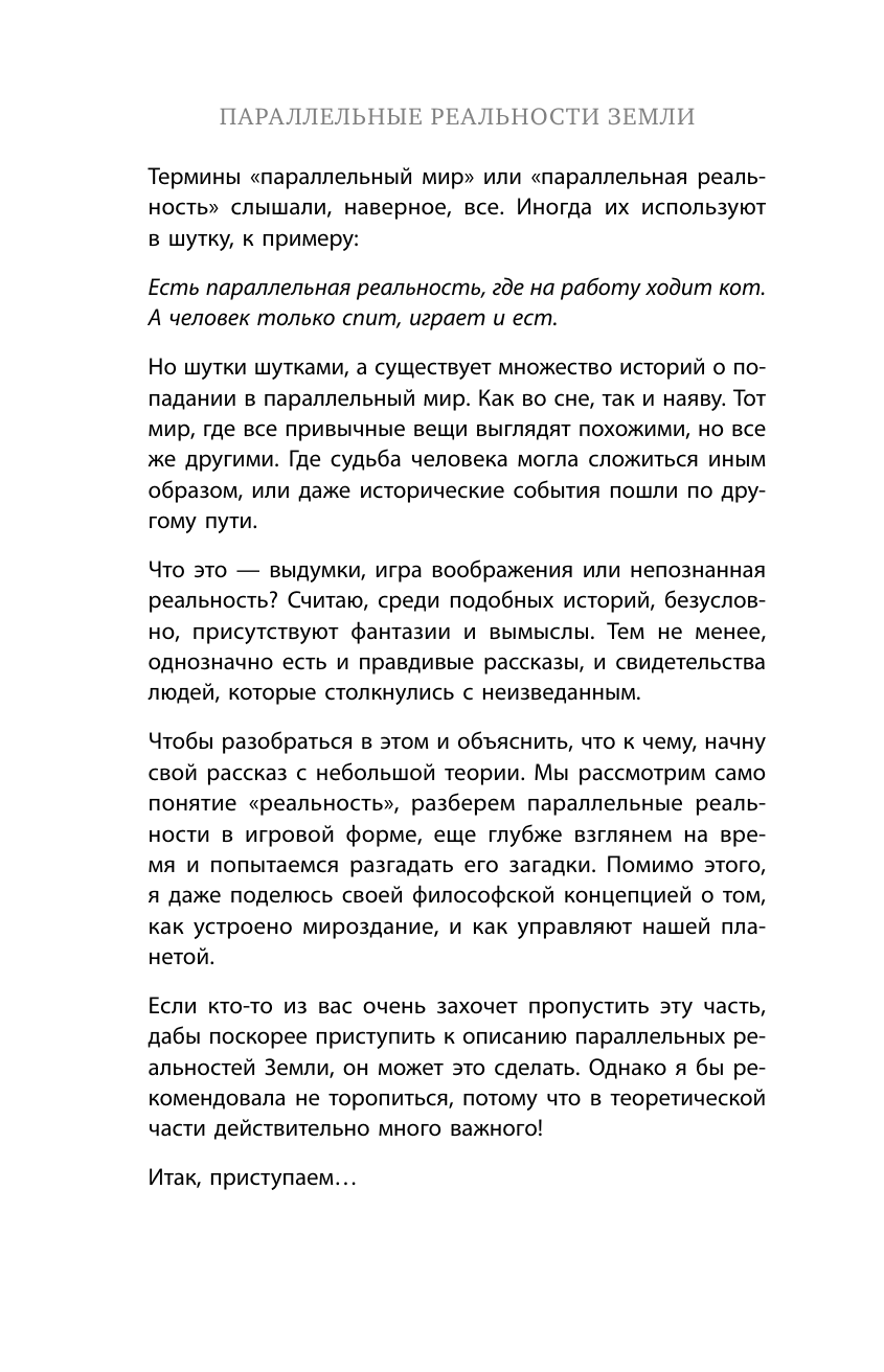 В новой книге Лера Некрасова приглашает вас в увлекательное путешествие, в котором расскажет о параллельных реальностях нашей планеты. Мы узнаем о невидимых нитях, управляющих историей, о переходе в параллельные «ветви» событий, о тайнах Луны и будущем нашего мира.