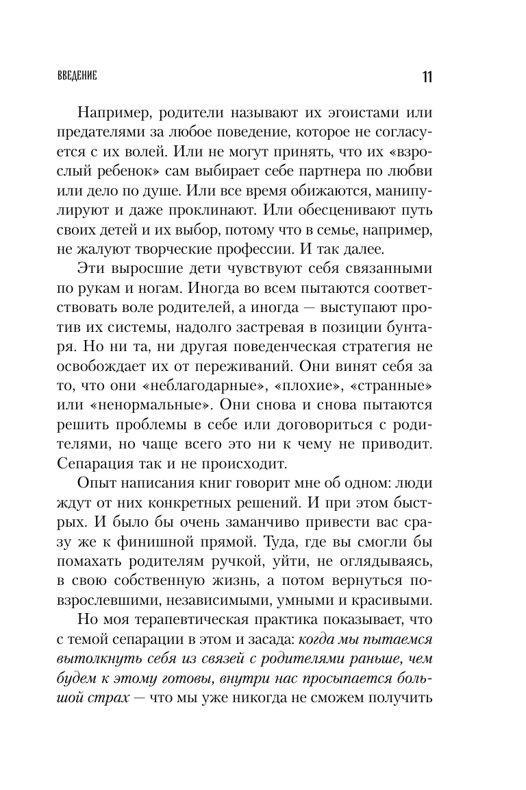 Если вы недовольны своими отношениями с родителями, эта книга написана для вас. В ней практикующий психолог, psy-блоггер и автор бестселлеров Юлия Пирумова рассказывает, почему важно пройти сепарацию и как она влияет на отношения с окружающими и самим собой. А еще она делится способами обретения личных границ и избавления от чувства вины и разочарования. Книга также выходит под названием "Уйти, чтобы вырасти. Сепарация как способ жить свою жизнь"