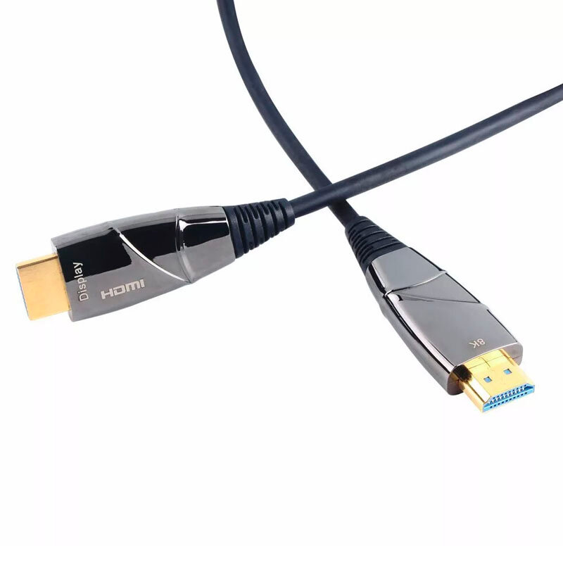 Преобразователи сигнала из меди в оптику находятся внутри разъемов. Дополнительного питания не требуется. Использование оптики позволяет передавать HDMI сигнал без потери качества на большие расстояния, чем при использовании медного кабеля. Оптика значительно более устойчива к внешним электро-магнитным помехам и сама помех для электронного оборудования не создает, что значительно расширяет сферу применения .