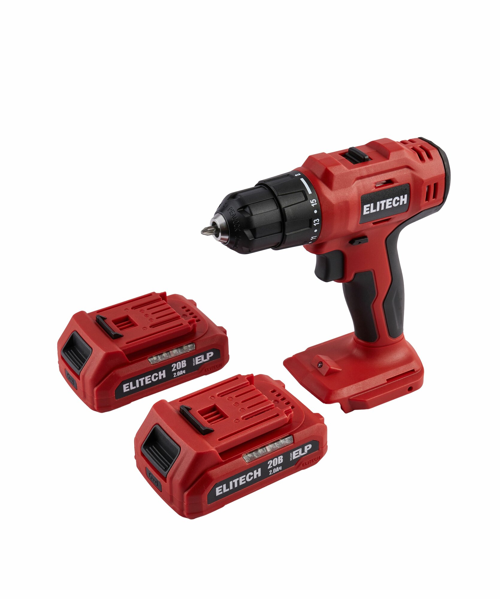Дрель-шуруповерт аккумуляторная Elitech ДА 20-2СЛ, 20 В Li-ion 2x2 Ач