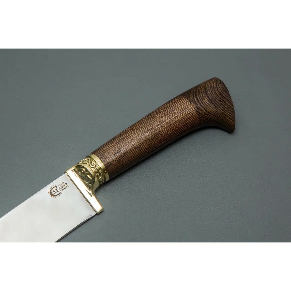 Мастерская Сёмина является известным производителем высококачественных туристических ножей в России. Отличительной особенностью ножей мастерской Сёмина является то, что они создаются вручную, что делает каждый нож уникальным. Клинок ножа выполнен из инструментальной стали марки Х12МФ с твердостью закалки 57-62 HRC по роквеллу. У данной стали уникальные технические показатели, что во многом объясняется химическим составом. Оптимальный процент углерода обеспечивает особую устойчивость к износу, поэтому изделие с такой маркировкой очень долго будет оставаться острым. Клинок с профилем Trailing Point является отличным выбором для выполнения задач, требующих хорошей режущей способности и контроля. Он идеально подходит для резки мягких материалов. Прямая заточка - это классическая и универсальная форма заточки, которая обеспечивает отличную режущую способность и простоту ухода за ножом. Полированный клинок выглядит очень элегантно и привлекательно: гладкая и блестящая поверхность придает ножу роскошный, профессиональный вид. Деревянная рукоять ножа имеет естественную текстуру, цвет и уникальные узоры, что придает ножу неповторимый и привлекательный внешний вид. Такая рукоять приятна на ощупь и комфортна при длительном использовании ножа, она не будет чувствоваться холодной или горячей при контакте с рукой. Туристический нож Узбекский - отличный выбор в качестве подарка для любителей активного отдыха на природе. Этот нож обладает всеми необходимыми качествами, чтобы стать надежным и функциональным спутником в походах, охоте, рыбалке и других активностях на открытом воздухе. Не относится к холодному оружию, сертификат прилагается. Разрешено свободное хранение и ношение.