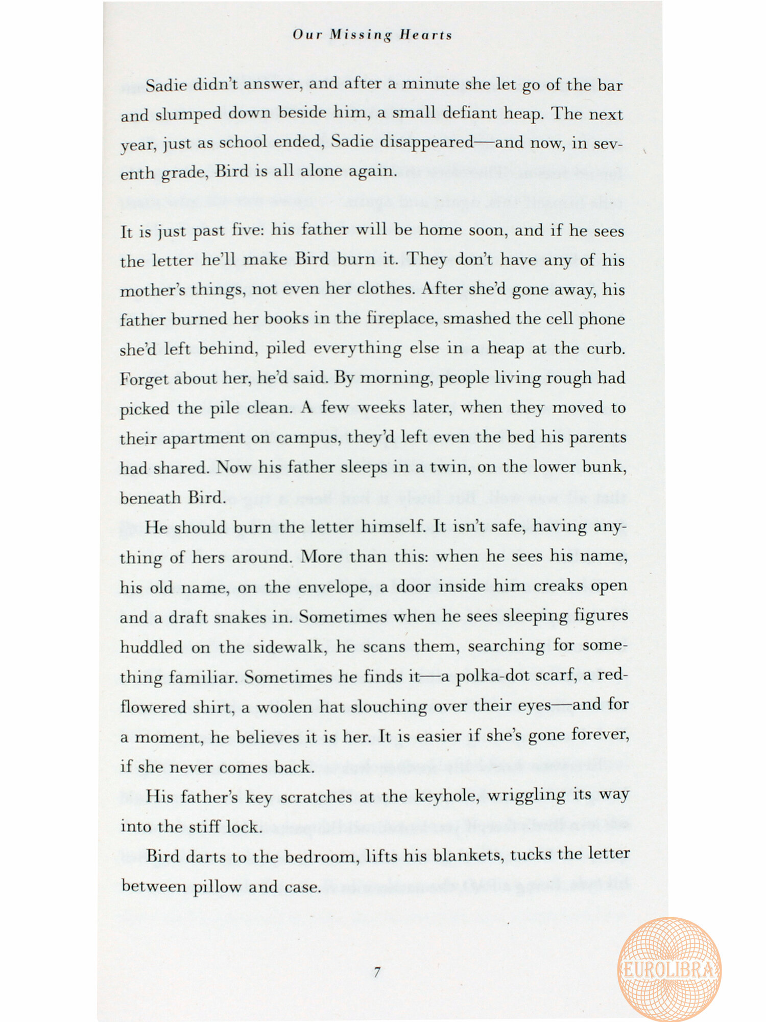 Twelve-year-old Bird Gardner lives a quiet existence with his loving father, a former linguist who now shelves books in a university library. His mother Margaret, a Chinese American poet, left without a trace when he was nine years old. He doesn't know what happened to her-only that her books have been banned-and he resents that she cared more about her work than about him.