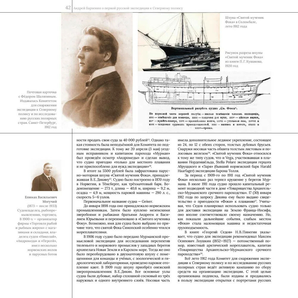 Научно-популярное издание представляет собой опыт обобщения информации, посвящённой первой русской научной экспедиции к Северному полюсу под руководством старшего лейтенанта Г.?Я.?Седова 1912—1914 годов. Основу издания составляет каталог уникальной коллекции цветных диапозитивов, сделанных в ходе этой экспедиции знаменитым полярником, художником и фотографом Николаем Васильевичем Пинегиным, которые хранятся в фондах Северного морского музея (г. Архангельск). Авторами обобщён и представлен широкий комплекс разнообразных источников и фактов, раскрывающих ход полярной экспедиции и её результаты. Издание адресовано широкому кругу читателей, всем, кто интересуется историей освоения Арктики.