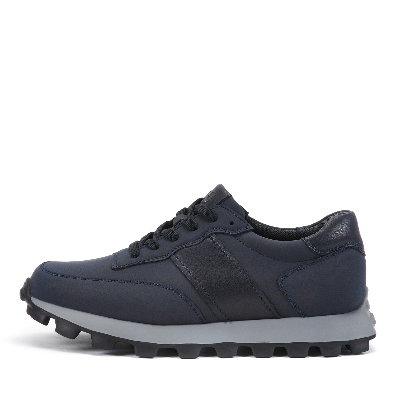 Практичные темно-синие мужские кожаные кроссовки. Подкладка изготовлена из мягкого текстиля, стелька кожаная. Рифленая подошва из материала ЭВА отлично амортизирует нагрузку при каждом шаге. Модель с утолщенным воротом, который бережно поддерживает зону щиколоток.