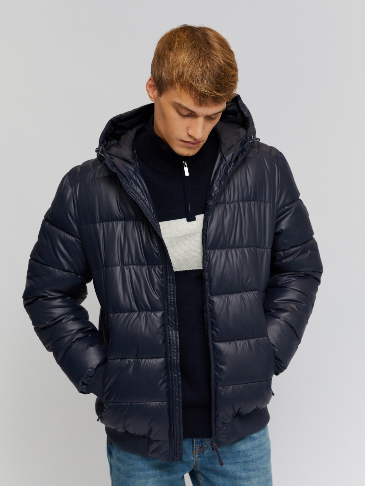Тёплая стёганая куртка-бомбер с капюшоном 014345102054 Zolla для мужчин