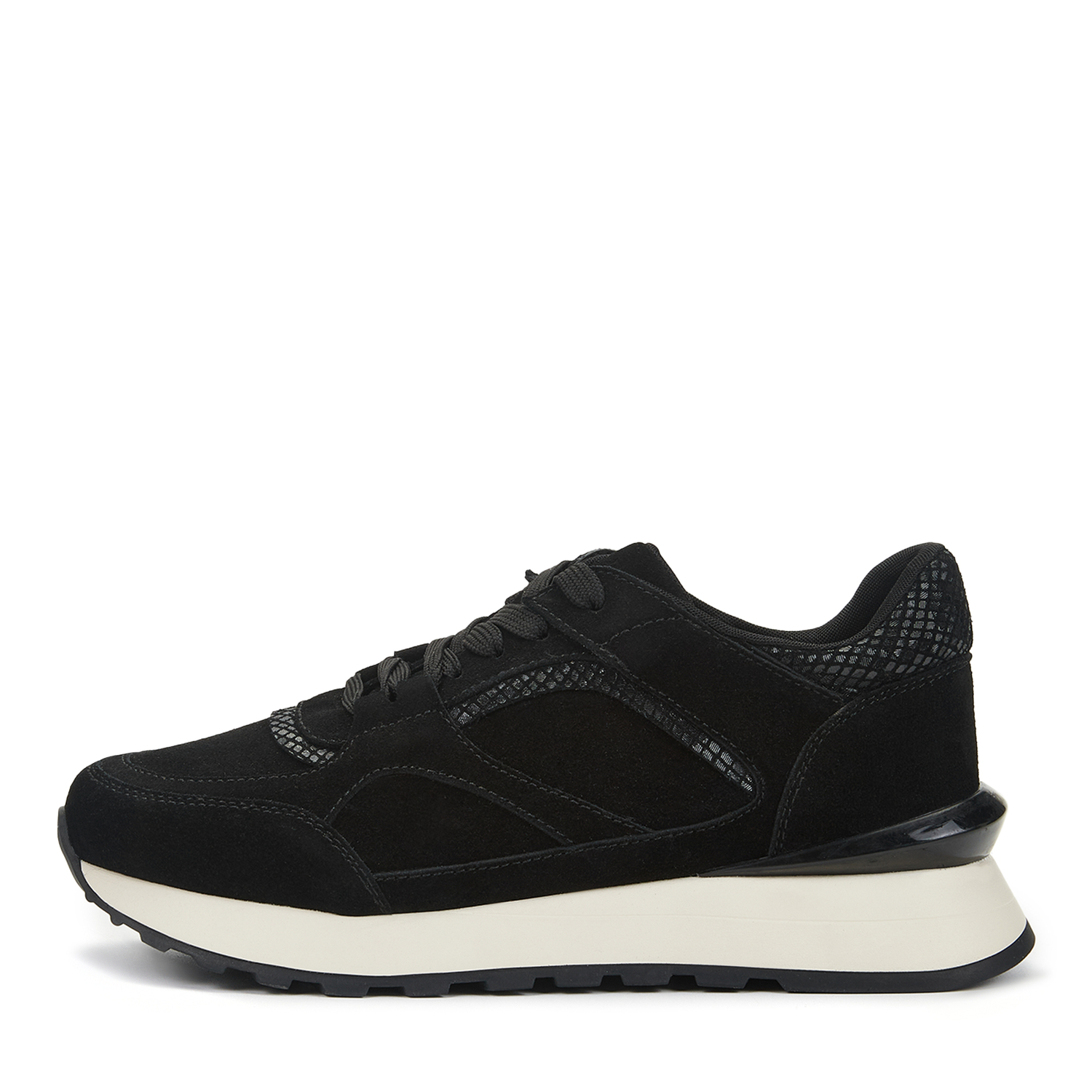 Стильные черные кроссовки с чешуйчатыми элементами декора. Комбинированный верх сочетает матовую кожу и бархатистый спилок. Текстильная подкладка и кожаная стелька обеспечивают комфорт стоп в течение дня. Объемная контрастная подошва из резины отличается прочностью и хорошими амортизирующими свойствами.