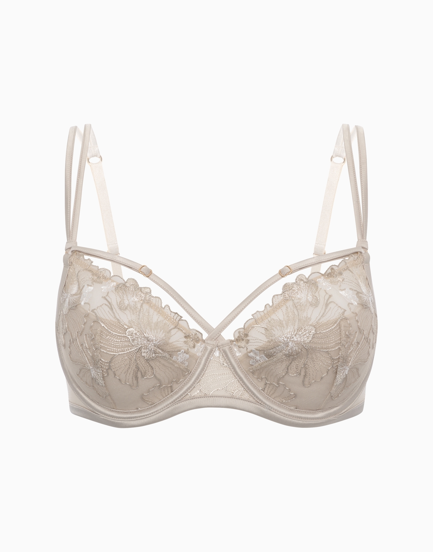 Бюстгальтер с мягкими чашками и усилителем из спонжа на стане. Верхняя часть чашек выполнена из тонких прозрачных материалов, что добавляет особую пикантность образу.