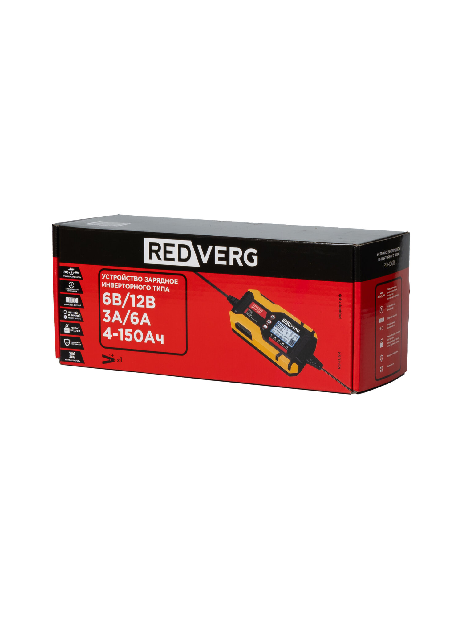 Зарядное устройство REDVERG RD-IC6R с усовершенствованным процессом заряда на основе микропроцессорного контроля обеспечивает максимально быстрое и полное восстановление заряда батареи. Компактная и легкая модель для удобства транспортировки и хранения, не занимает много места. Предназначено для зарядки всех типов свинцово-кислотных аккумуляторов 6 В и 12 В, включая MF (не требующие обслуживания), EFB, GEL, AGM и 12В литий-ионных аккумуляторов LiFePO4. Применяется для садовой техники, водного, легкового и коммерческого транспорта.