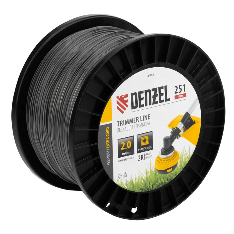 Леска для триммера Denzel Extra Cord , двухкомпонентная квадрат, 2,0 мм х 251 м., на DIN катушке 96844