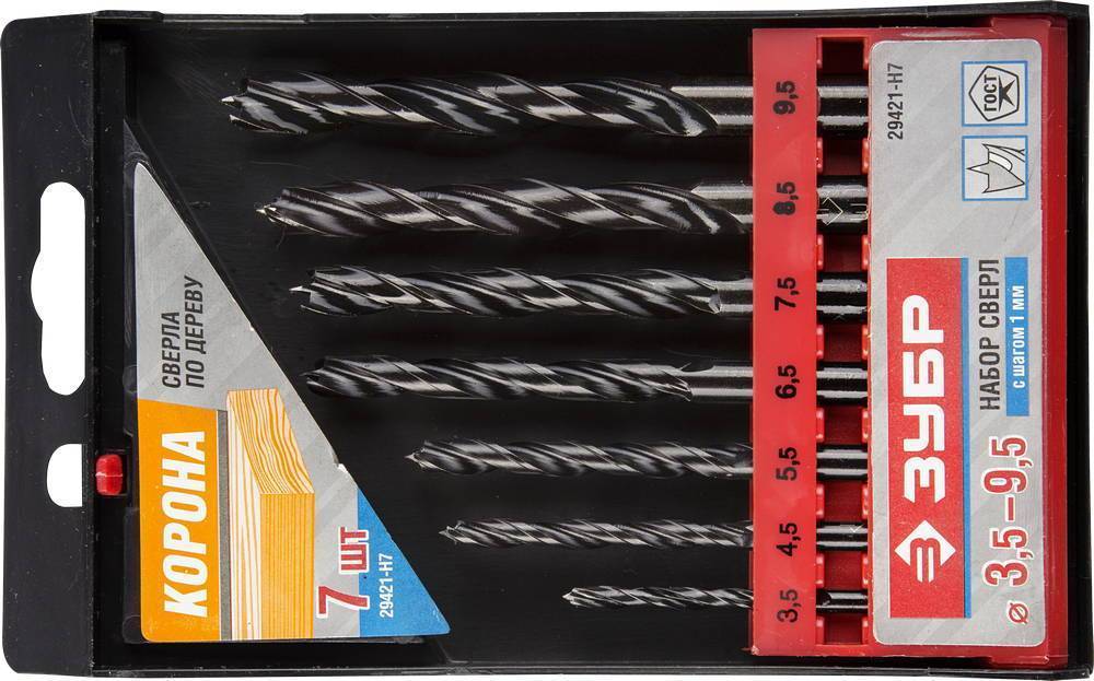 Изготовлены из качественной инструментальной стали. М-образная заточка в виде трезубца с конусным центром и подрезателями. Парооксидированная поверхность защищает металл от коррозии. Шлифованный цилиндрический хвостовик. Сверла по дереву спиральные предназначены для сверления отверстий вдоль и поперек волокон в древесине различных пород, а также в клеевых и фанерных щитах. В упаковке: 7 штук.
