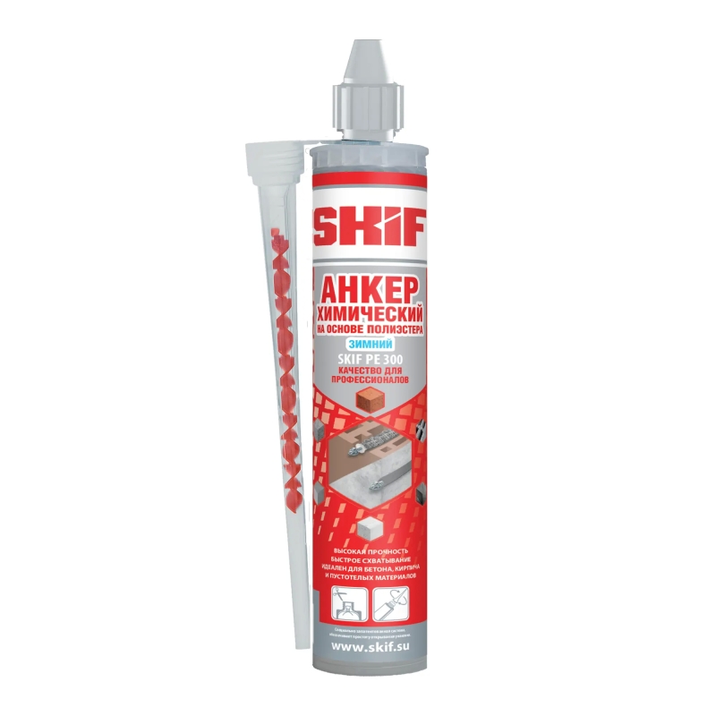 **Анкер химический Skif PE 300 W** — это высококачественный химический анкер на основе винилэстеровой смолы, предназначенный для создания надежных креплений с высокой несущей способностью. Предназначен для анкеровки тяжелых грузов, ремонта бетонных конструкций, крепления металлических и деревянных конструкций, фиксации металлических труб, установки ограждений, монтажа сантехнических аксессуаров, установки лестниц и перил, крепления дверных и оконных рам. Предназначен для строительно-монтажных работ, капитального ремонта, установки тяжелых конструкций, монтажа инженерных систем, фасадных работ, монтажных работ в промышленных объектах.