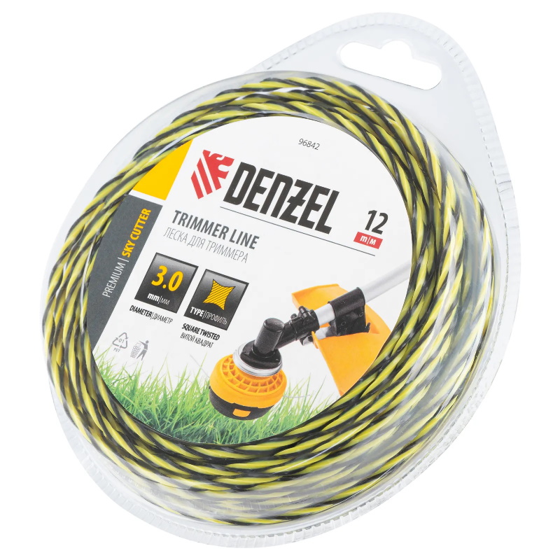 Леска для триммера двухкомпонентная витая квадратная Denzel , 3,0ммх12м, блистер SkyCutter 96842