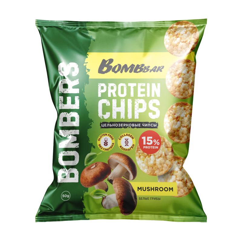 Бомббар Чипсы цельнозерновые протеиновые 50 г Белые грибы Фитнес фуд ООО