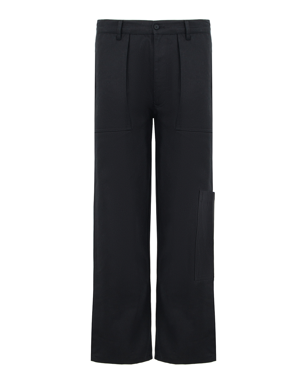 Эти брюки воплощают минималистский шик и утонченное мастерство кроя, идеально подходя для современного гардероба. Изготовленные из высококачественной ткани, они предлагают сочетание долговечности и комфорта, обеспечивая свободу движений. Классический силуэт с прямыми линиями и элегантным сужением к щиколотке создает стройный и утонченный образ. Акцент на архитектурных элементах подчеркивается четкими стрелками, добавляющими структуру и стильную чёткость. Большие накладные карманы на бедрах и боках не только функциональны, но и создают интересную игру с пропорциями, добавляя брюкам динамичный и современный характер. Элементы отделки включают тщательно обработанные швы и аккуратные складки, подчеркивающие изысканность и внимание к деталям. Талия, дополненная шлёвками для ремня, позволяет варьировать аксессуары и подчёркивает универсальность конструкции. Эти брюки станут основным элементом стильного гардероба, удачно сочетаясь как с классическими сорочками, так и с непринужденными футболками.