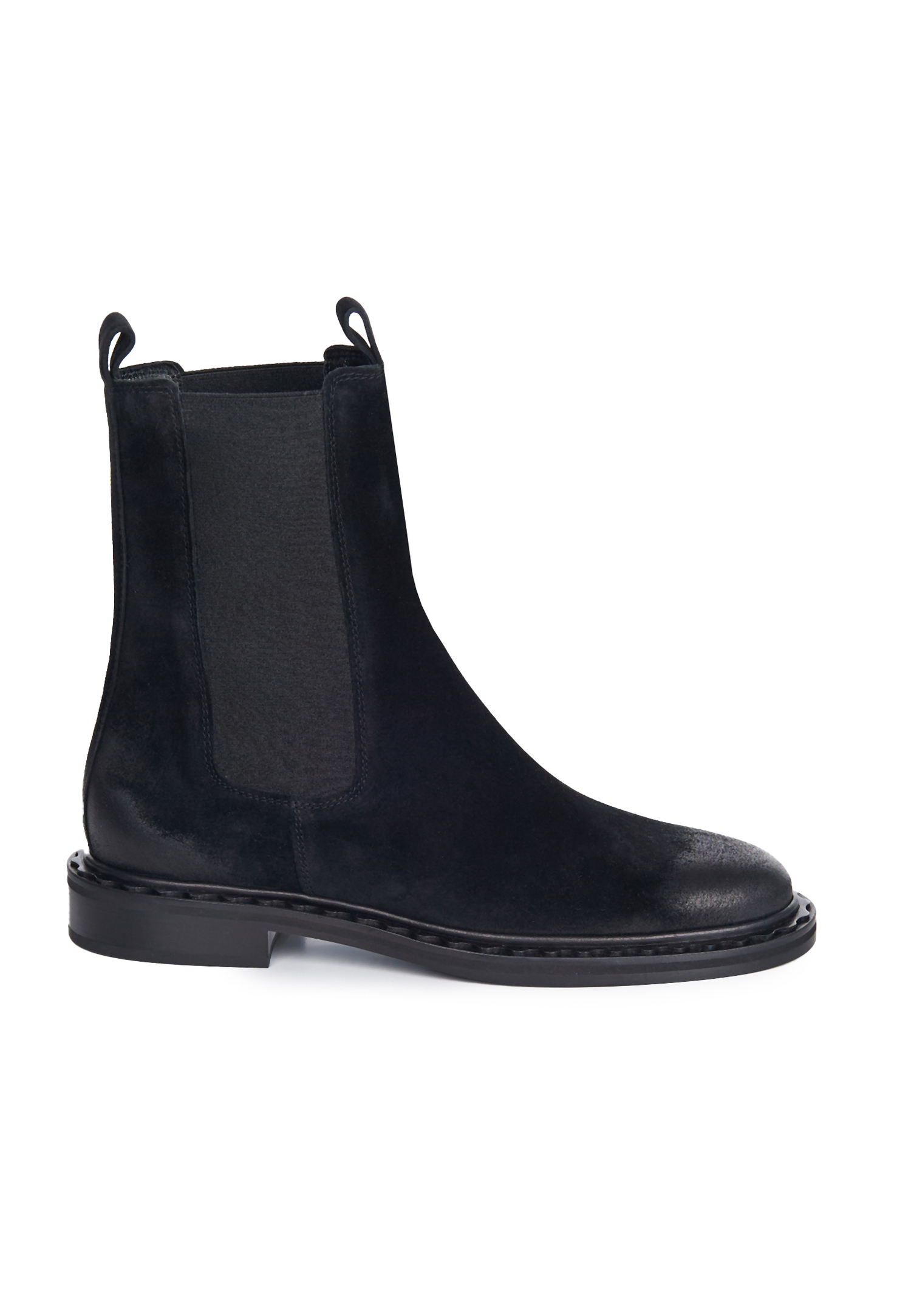 Черные челси KENNEL&SCHMENGER представляют собой идеальное сочетание стиля и практичности. Выполненные из бархатистой замши, они придают образу утонченность и современный вид. Широкая подошва с протектором обеспечивает надежное сцепление с поверхностью, делая эту обувь идеальной для городских улиц, особенно в прохладное время года. Голенище ботинок, дополненное двумя петлями, облегчает процесс переобувания. Традиционные боковые вставки из эластичного текстиля обеспечивают комфортную посадку по ноге, гарантируя легкость и удобство при носке. Мысок и задники модели украшают декоративные потертости, которые создают винтажный эффект и добавляют паре характерный стильный вид. Декор придает обуви неформальный оттенок, что делает ботинки универсальными для различных образов.