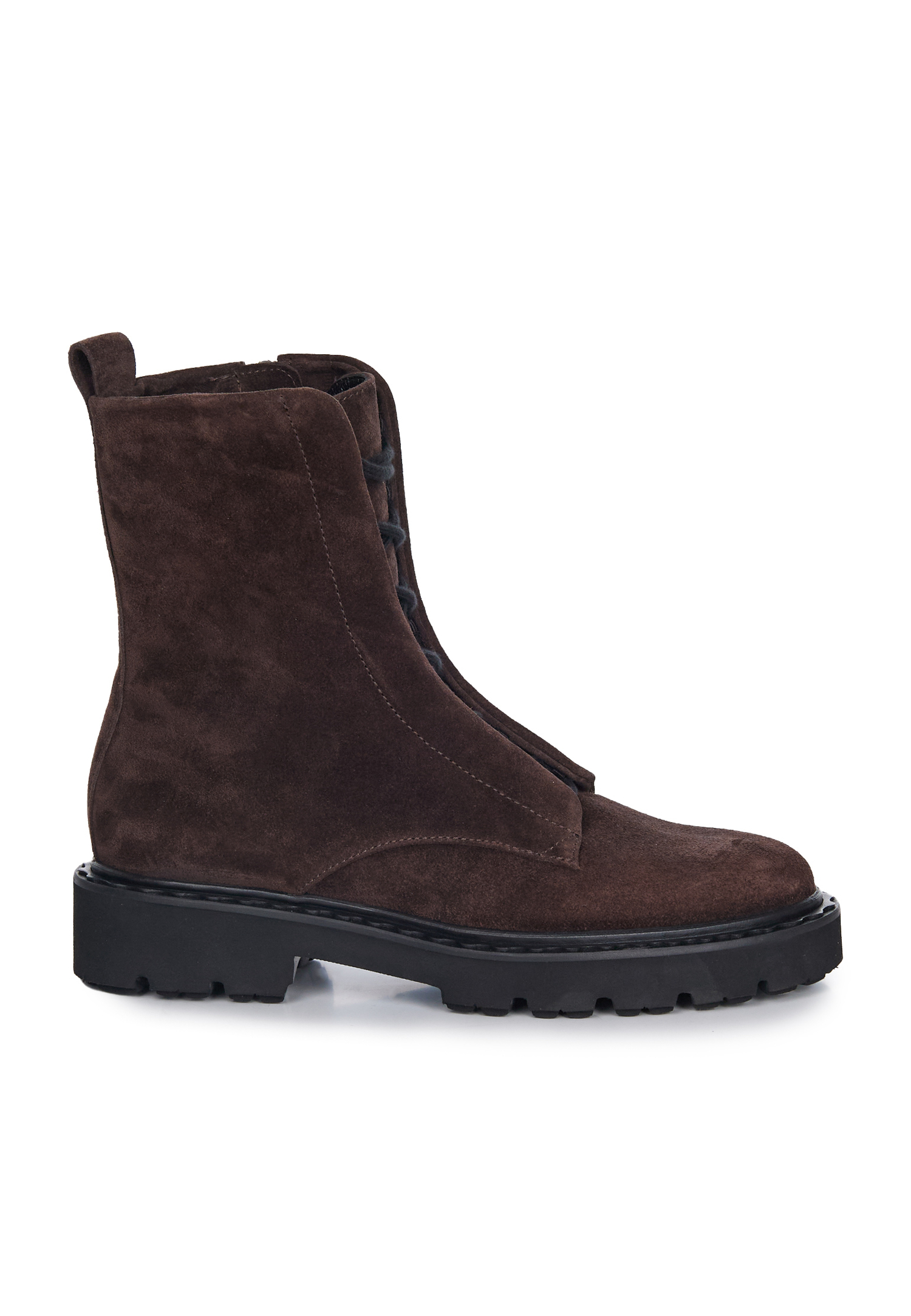 Темно-каштановые замшевые сапоги - это стильный и универсальный элемент гардероба, который подойдет для различных случаев. Они выполнены из высококачественной мягкой бархатистой замши, что придаёт им элегантный и благородный вид. Дизайн отличается сдержанностью и отсутствием лишних деталей, акцентируя внимание на чистоте и строгости линий. Широкая устойчивая подошва с тракторными подметками обеспечивает отличное сцепление с поверхностью, что особенно важно в осенне-зимний период. Модель с боковым замком универсальна: она прекрасно смотрится как с юбками, так и с брюками. Можно создать образ в классическом стиле, сочетая сапоги с длинным пальто и юбкой, или более повседневный, добавив узкие джинсы и объемный свитер.
