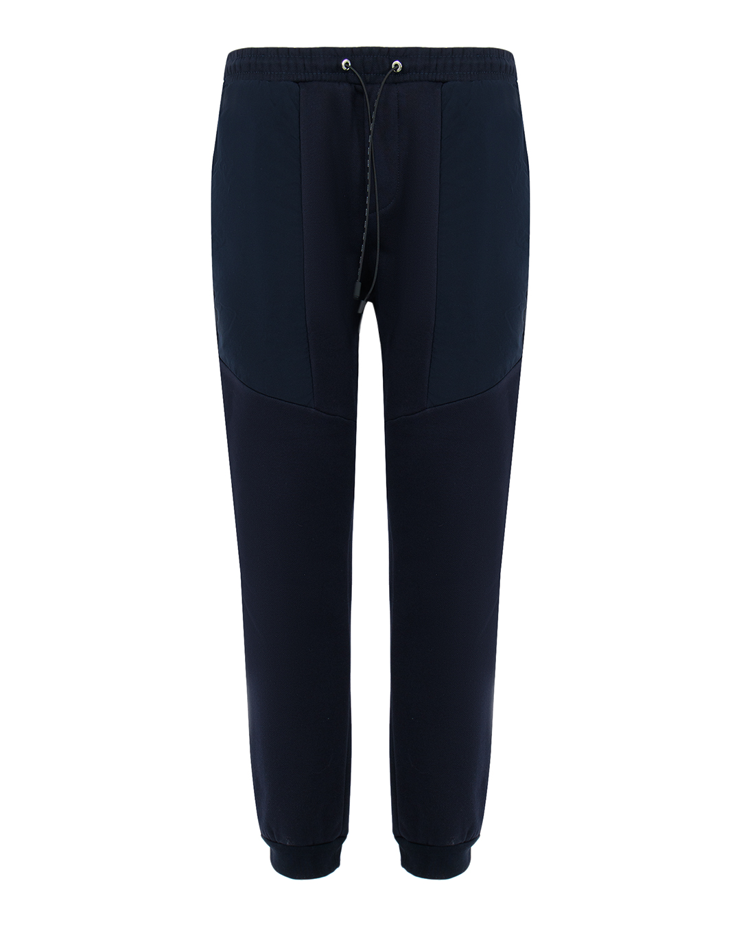 Эти брюки — воплощение расслабленного стиля с акцентом на современную эстетику. Они выполнены из сочетания гладких и текстурированных материалов, создающих интересную игру фактур и добавляющих визуальной глубины. Эластичная талия с регулируемым шнурком обеспечивает идеальную посадку и комфорт, позволяя легко адаптировать брюки к любому образу. Шнурок с минималистичными наконечниками добавляет штрих изысканности. Контрастные вставки в области бедер создают динамичную линию, подчеркивающую форму и добавляющую индивидуальности. Манжеты на резинке обеспечивают свободу движений и подчеркивают современный крой. Эти брюки идеально подходят для создания стильного кэжуал образа, сочетая комфорт и современный дизайн. Они становятся универсальным элементом гардероба, который легко комбинируется с различными верхами.
