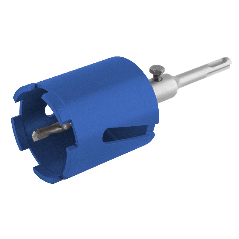 Коронка кольцевая по бетону алмазная безударная Mos , в сборе, SDS-PLUS, 5 зубьев, 68 мм предназначена для безударного сверления отверстий под монтажные коробки в бетоне (в том числе армированном) и кирпиче. При работе требуется водяное охлаждение.Преимущества Центрирующее сверло позволяет точно позиционировать коронку перед началом сверления и предотвращает ее смещение во время работы Наконечник сверла изготовлен из композитного карбид-вольфрамового сплава, а режущая кромка коронки покрыта порошком из технических алмазов Устойчива к появлению коррозии