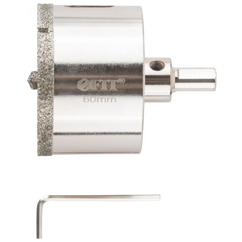 Коронка FIT имеет диаметр 60 мм и максимальную глубину сверления 70 мм. Предназначена для мокрого сверления твердых материалов, таких как керамогранит, камень и кафельПреимущества Диаметр коронки: 60 мм Максимальная глубина сверления: 70 мм Влажное сверление, что продлевает срок службы инструмента и улучшает качество отверстия Центровочное сверло в комплекте для точного позиционирования Трёхгранный цилиндрический хвостовик обеспечивает надежное крепление в патроне Режущая кромка с алмазным порошком обеспечивает высокую износостойкость и эффективное сверление плотных материалов Подходит для использования с керамогранитом, натуральным камнем, кафелем и подобными материалами Изготовлена с учётом снижения риска сколов на материале при работе