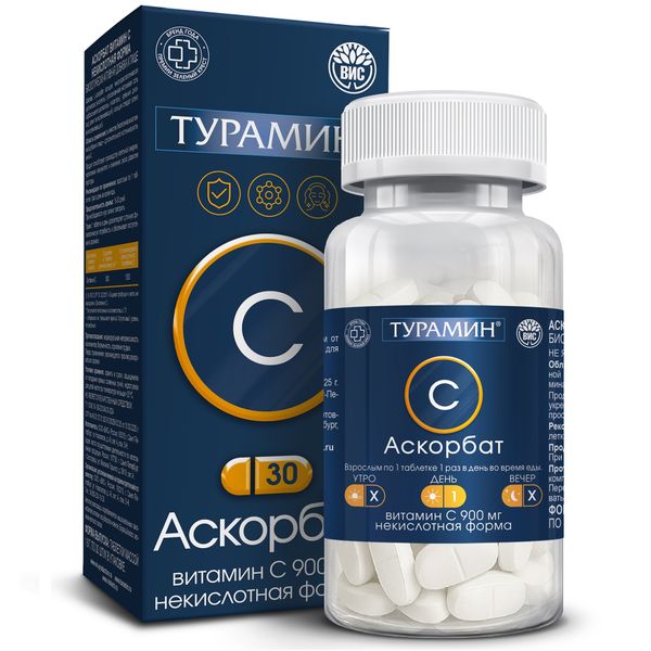 Аскорбат витамин С некислотная форма Турамин таблетки 1,8г 30шт ВИС ООО