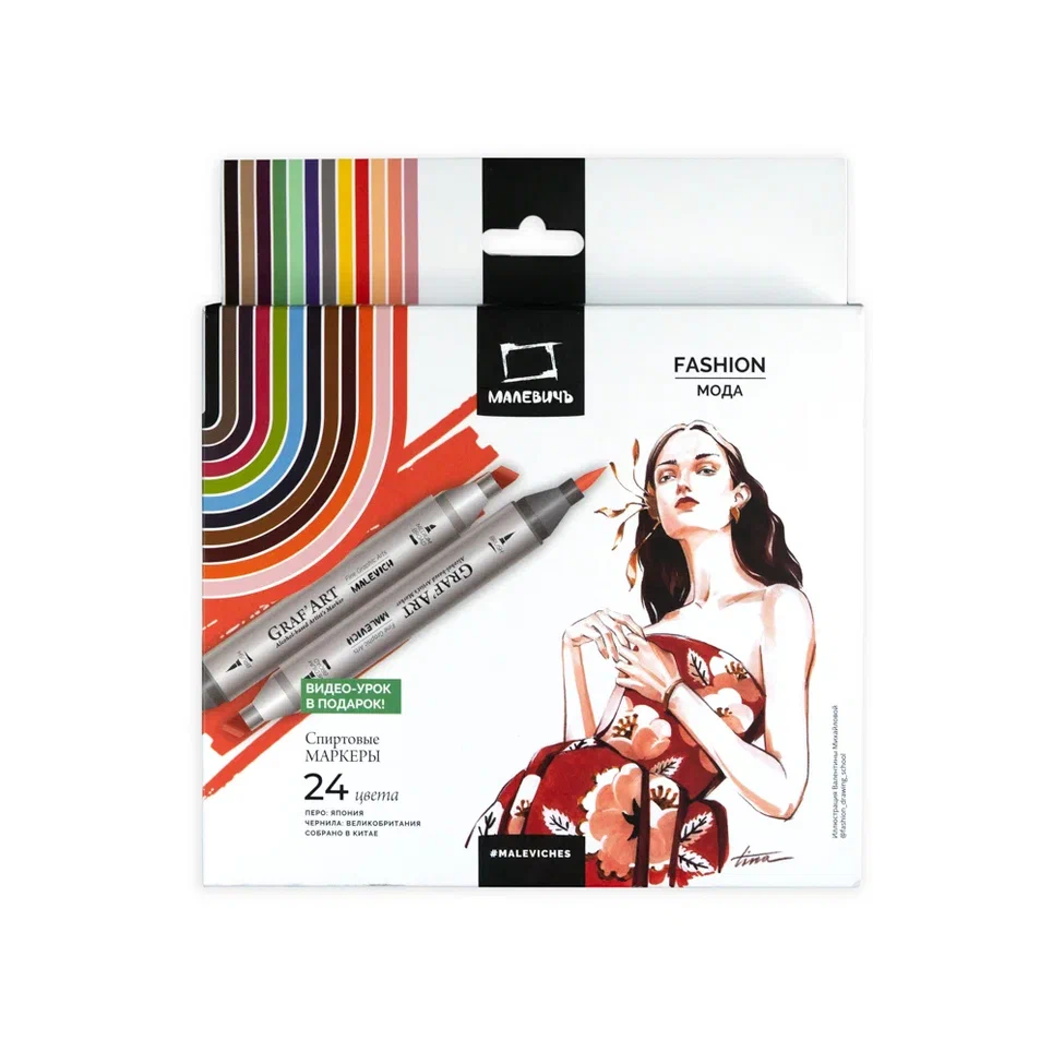 Набор спиртовых маркеров Малевичъ Brush, Мода 24 цв.