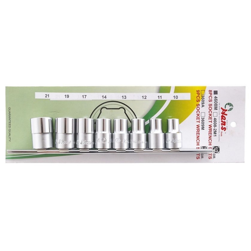 Комплект 6-ти гранных головок Hans 4608M, 10-21 мм, 8 предметов