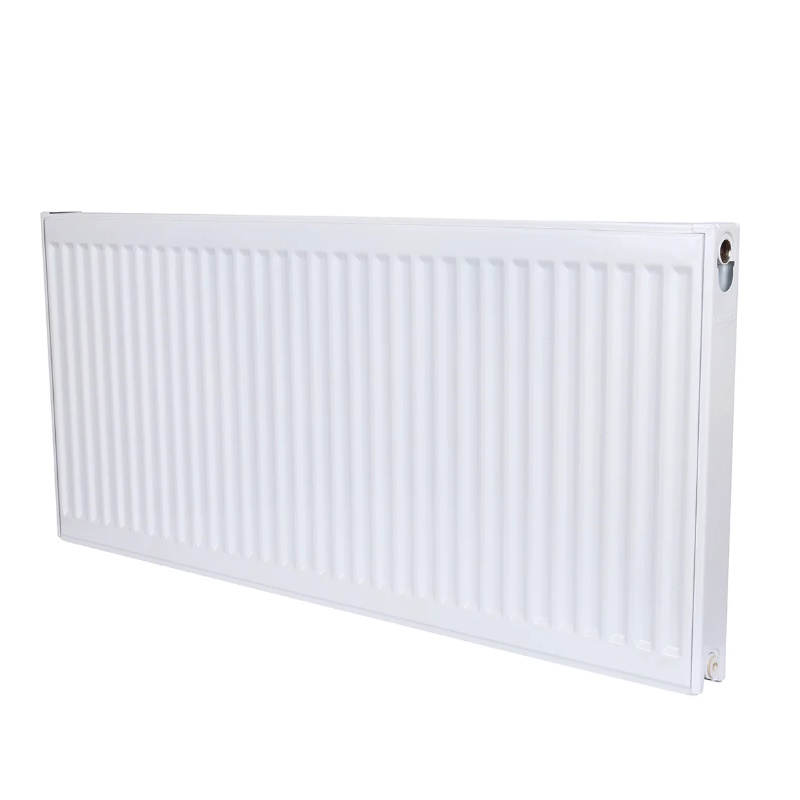 Радиатор Rommer RRS-2020-223130 22/300/1300 предназначен для использования в закрытых системах отопления (одно- и двухтрубных) жилых, административных и общественных зданий. Идеально подходит для загородных домов, коттеджей, дач, офисных помещенийПреимущества Высокая надежность конструкции. Радиатор изготовлен из высококачественной холоднокатаной стали DC01 толщиной 1,2 мм, что обеспечивает длительный срок службы и устойчивость к механическим нагрузкам Эффективное отопление. Мощность 1871 Вт позволяет обогревать площадь до 18,7 м², а продуманная конструкция с двумя панелями и дополнительными теплоотдающими поверхностями обеспечивает равномерный прогрев помещения Прочность и безопасность. Выдерживает рабочее давление до 9 атмосфер и испытательное до 13,5 атмосфер, максимальная температура теплоносителя — 120°C Удобство монтажа и обслуживания. Имеет нижнее правое подключение с внутренней резьбой G 1/2", комплектуется кронштейнами и монтажным набором. Съемная крышка упрощает очистку прибора