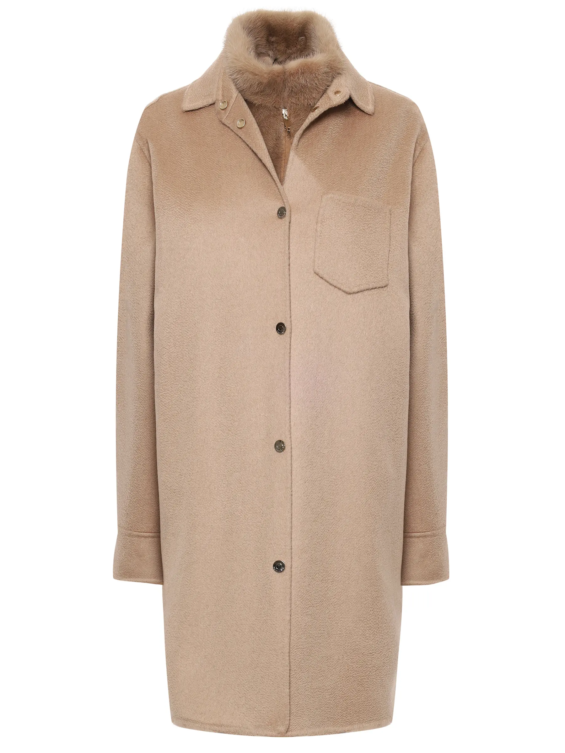 -Бежевое пальто из мягкого кашемира и жилет из меха норки от MANZONI 24.