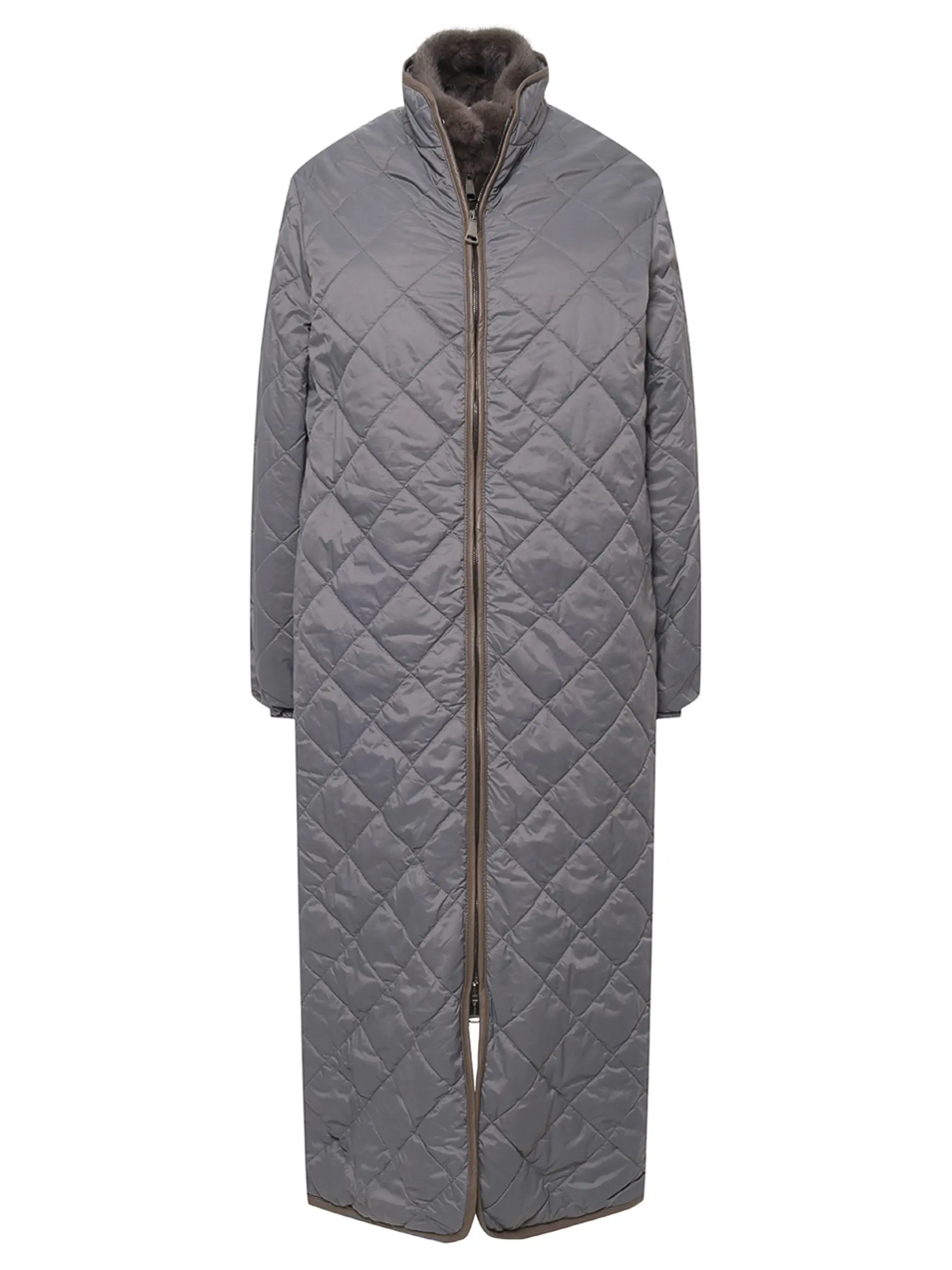 -Серое стеганое пальто и жилет из меха норки от MANZONI 24.