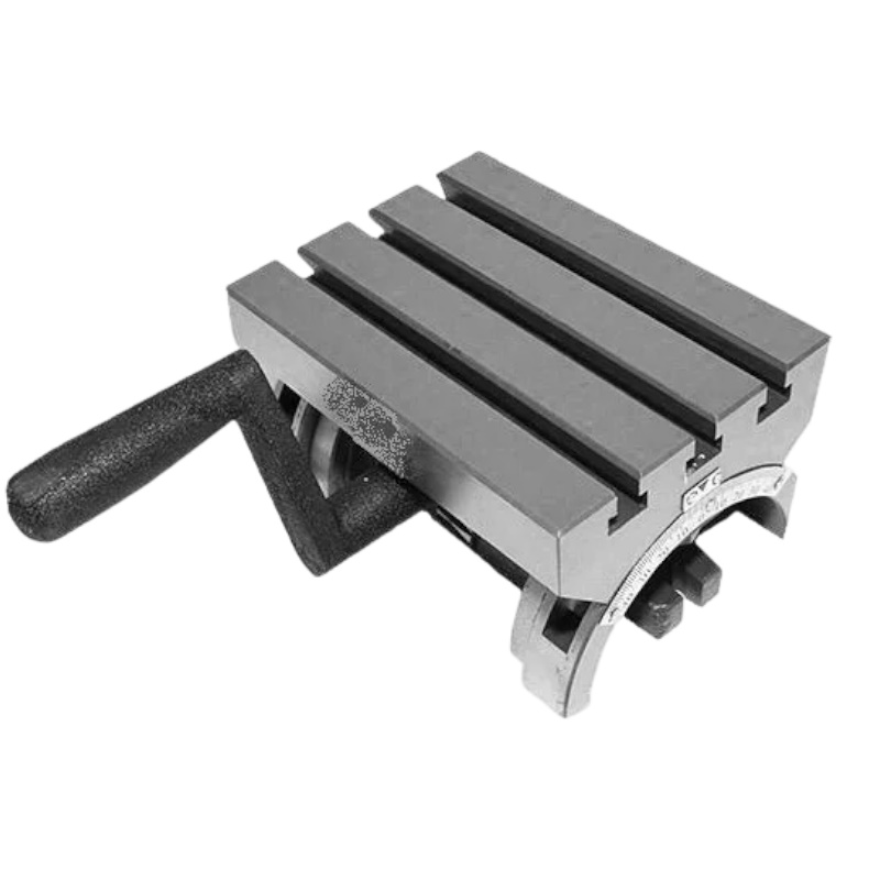 Стол координатный наклонный Visprom предназначен для использования в качестве дополнительной оснастки на универсальных фрезерных и сверлильных станках. Преимущества Использование стола позволяет успешно выполнять такие операции как фрезерование, сверление и обработка отверстий, фрезерование пазов и уступов, и других элементов детали под углом от 0° до 45° При использовании KTT-180 увеличивается производительность обработки за счет возможности установки разных углов Рабочая поверхность стола отшлифована Все установки углов жестко фиксируются гайками Материал изготовления – чугун