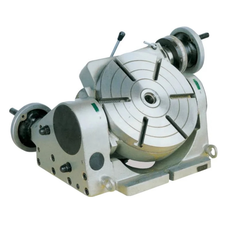 Поворотный стол с наклоном используется в качестве дополнительного расширения функций металлообрабатывающих станков. Его основное преимущество – это широкий диапазон позиционирования установленной детали.Преимущества Данная модель имеет возможность настройки и регулировки сразу в двух плоскостях и высокоточную градуировку Центр поворотной плиты оснащен конусом Морзе, а сама плита –т-образными пазами Все позиции жестко фиксируются зажимами Поверхность стола отшлифована Прочная и надежная конструкция — выполнен из высококачественных материалов, что обеспечивает долгий срок службы и стабильную работу даже при интенсивных нагрузках