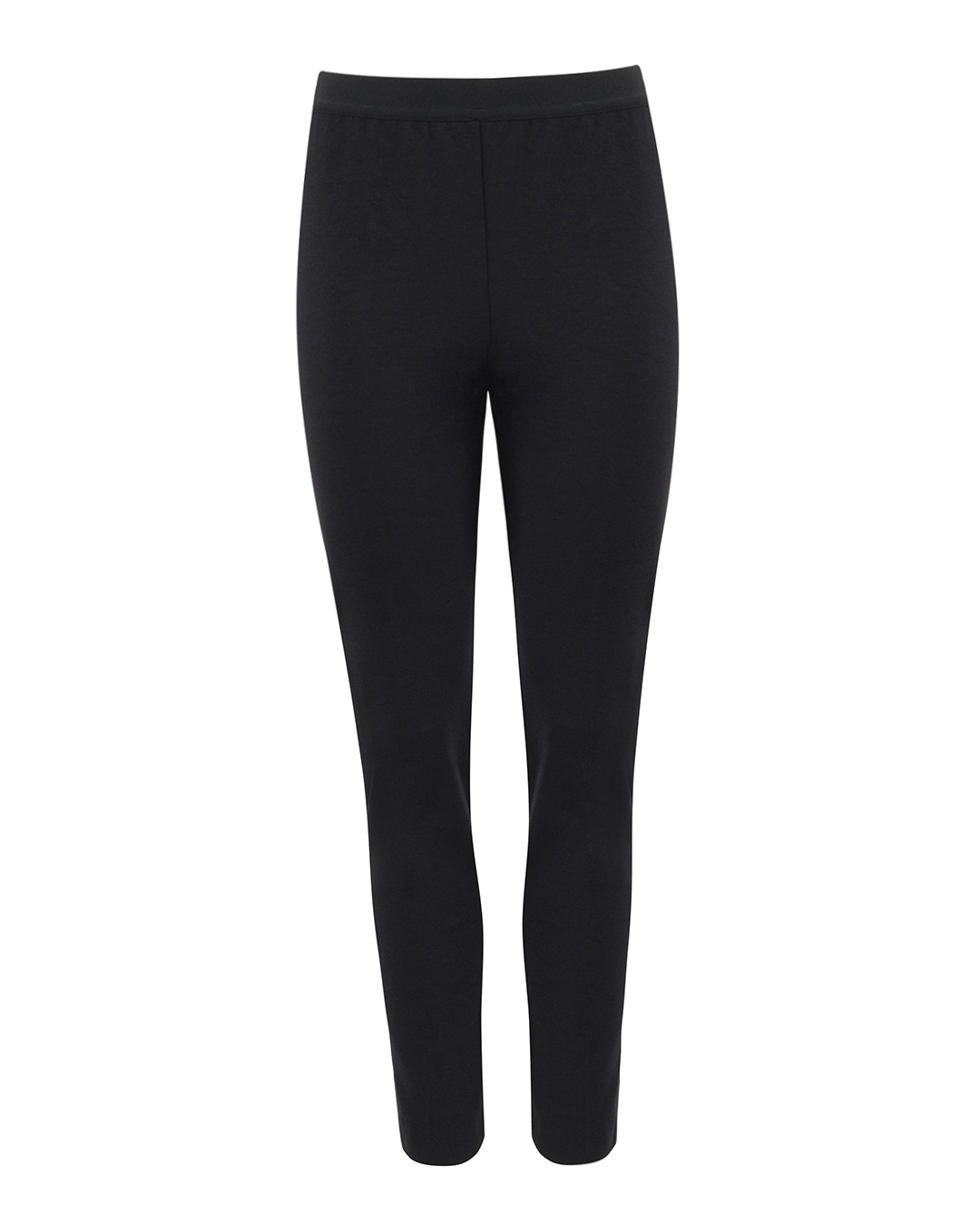 Эти брюки изящно сочетают минимализм и современную функциональность. Их насыщенный чёрный цвет делает изделие универсальным базовым элементом, который прекрасно интегрируется в любой гардероб. Облегающий крой подчёркивает силуэт, создавая стройный и утончённый образ. Брюки выполнены из эластичной ткани, которая обеспечивает комфорт и свободу движения, сохраняя форму при носке. Эластичный пояс гарантирует идеальную посадку и удобство, исключая необходимость в дополнительных застёжках или ремнях. Нижний край брюк аккуратно подшит, подчеркивая их лаконичность и минималистичность. Без лишних деталей и акцентов, внутренние швы обработаны с точностью, демонстрируя высокое качество исполнения. Эти брюки — незаменимый элемент для создания элегантных и стильных образов на каждый день, сочетая в себе комфорт и современный стиль.