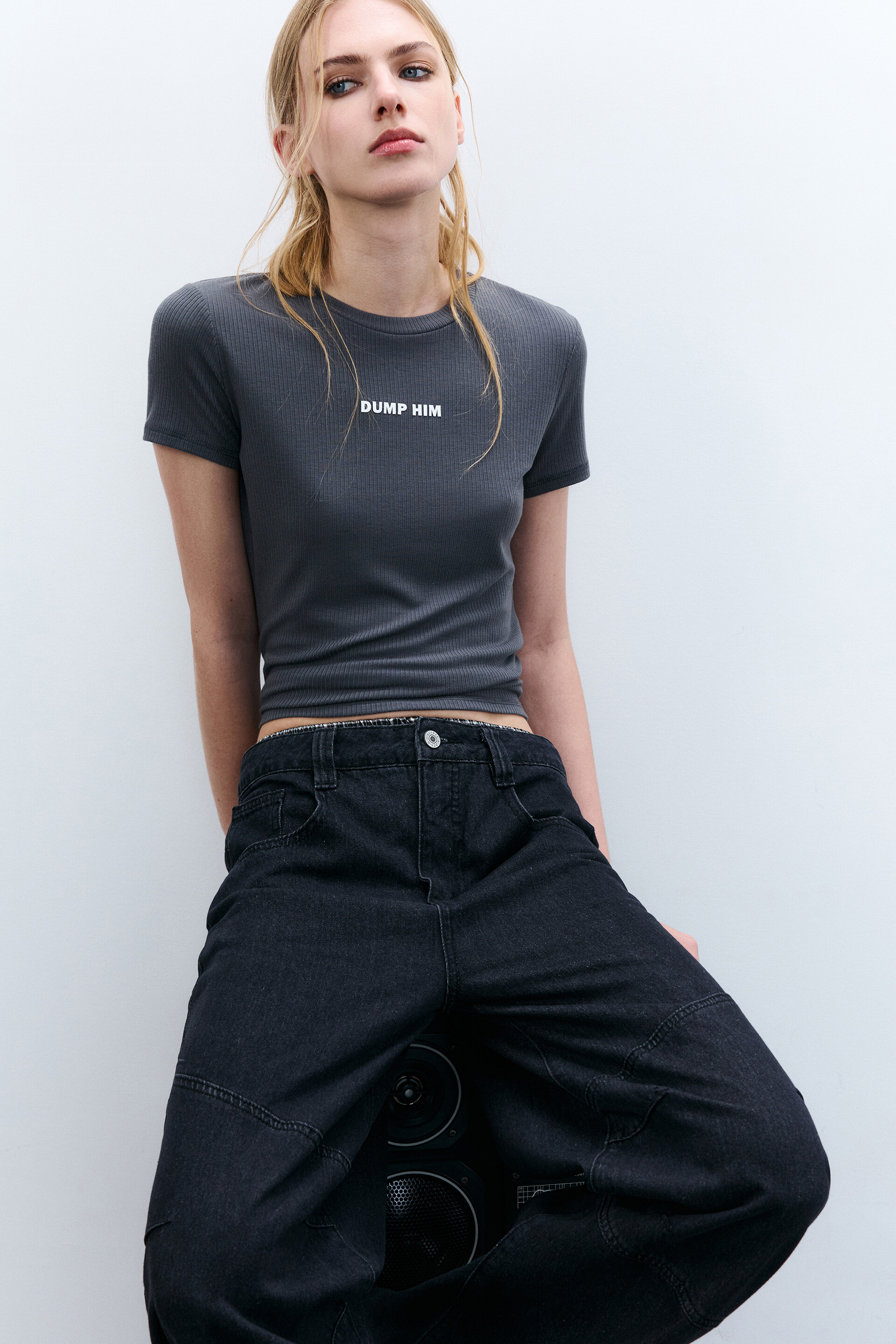- Укороченная женская футболка-топ облегающего кроя из плотной и эластичной ткани