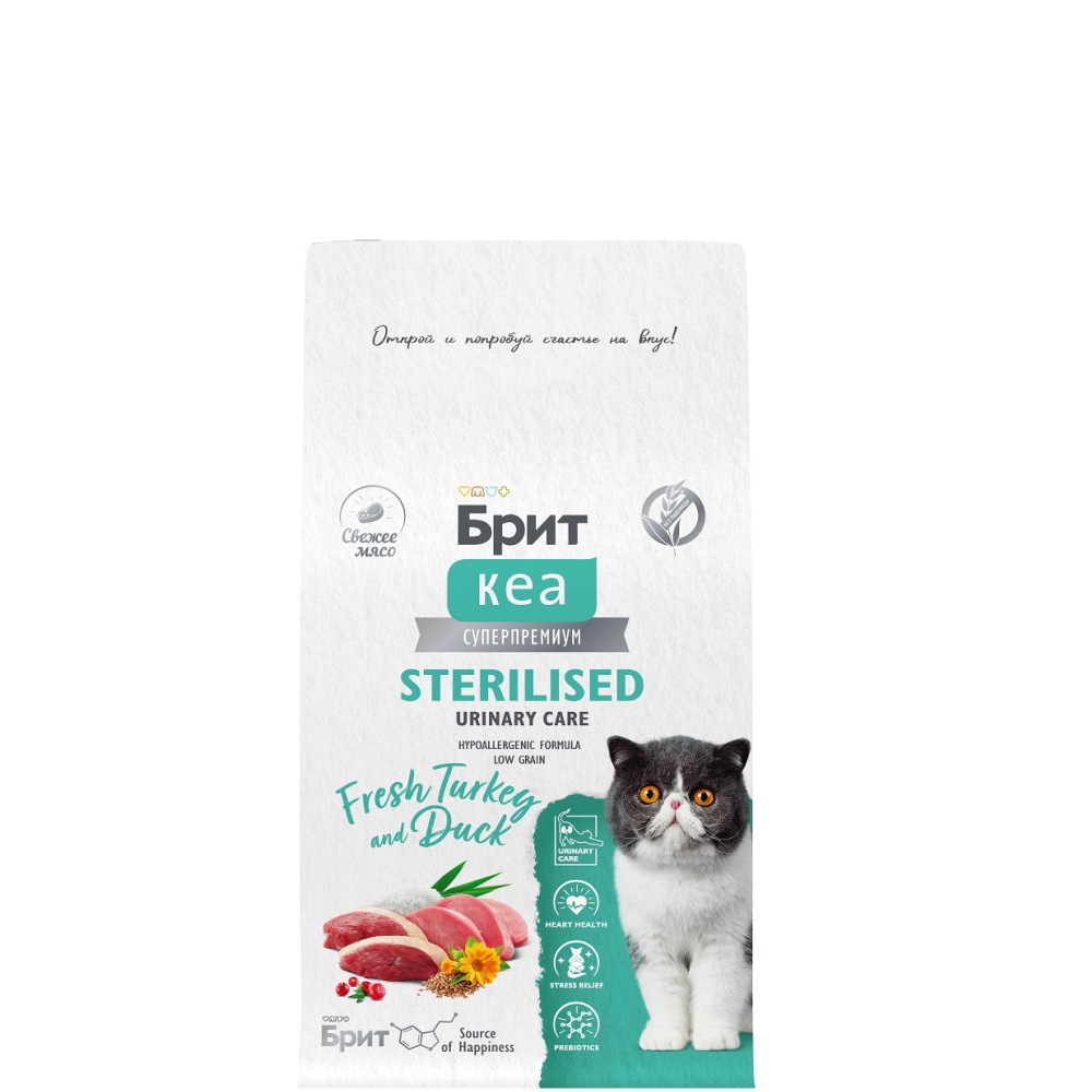 Brit Kea Sterilised Сухой корм для профилактики МКБ у стерилизованных кошек, с индейкой и уткой, 400 гр.