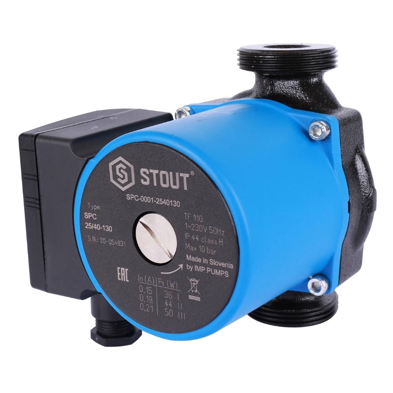 Циркуляционный насос STOUT применяется для принудительной циркуляции теплоносителя в системах отопления и горячего водоснабжения. Имеет три режима работы, выбор которых осуществляется трехпозиционным переключателем. Корпус насоса изготовлен из чугуна, что обеспечивает надежность и долгий срок службы. Аппарат прост в использовании и не требует дополнительного обслуживания.Преимущества Простота в использовании Бесшумность циркуляционного насоса Небольшие габаритные размеры Корпус изготовлен из чугуна Большой срок эксплуатации