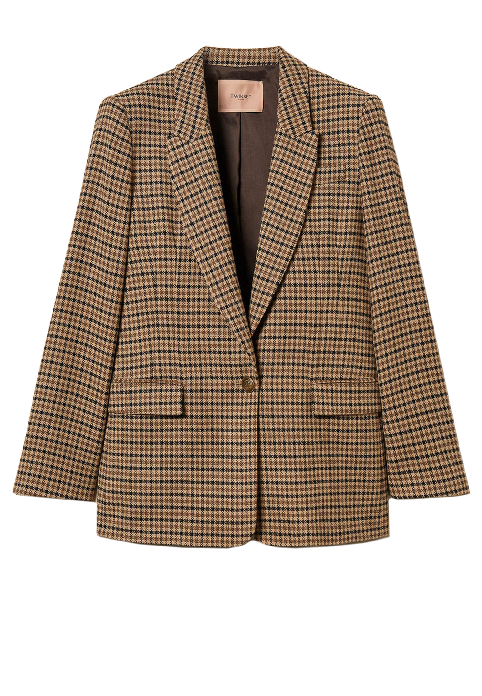 Лаконичный однобортный жакет прямого силуэта из коллекции Twinset Milano выполнен из коричневой шерстяной ткани с утонченным клетчатым узором. Эта модель станет идеальным решением как для деловых встреч, так и для повседневных образов благодаря своему универсальному дизайну и элегантности. Широкие лацканы добавляют жакету нотку классического стиля, подчеркивая ваш изысканный вкус. Его прямой силуэт обеспечивает комфорт и стильную посадку, а натуральная шерстяная ткань гарантирует теплоту и долговечность. Модель прекрасно сочетается с другими изделиями из этой коллекции Twinset Milano, создавая гармоничный и завершенный образ.